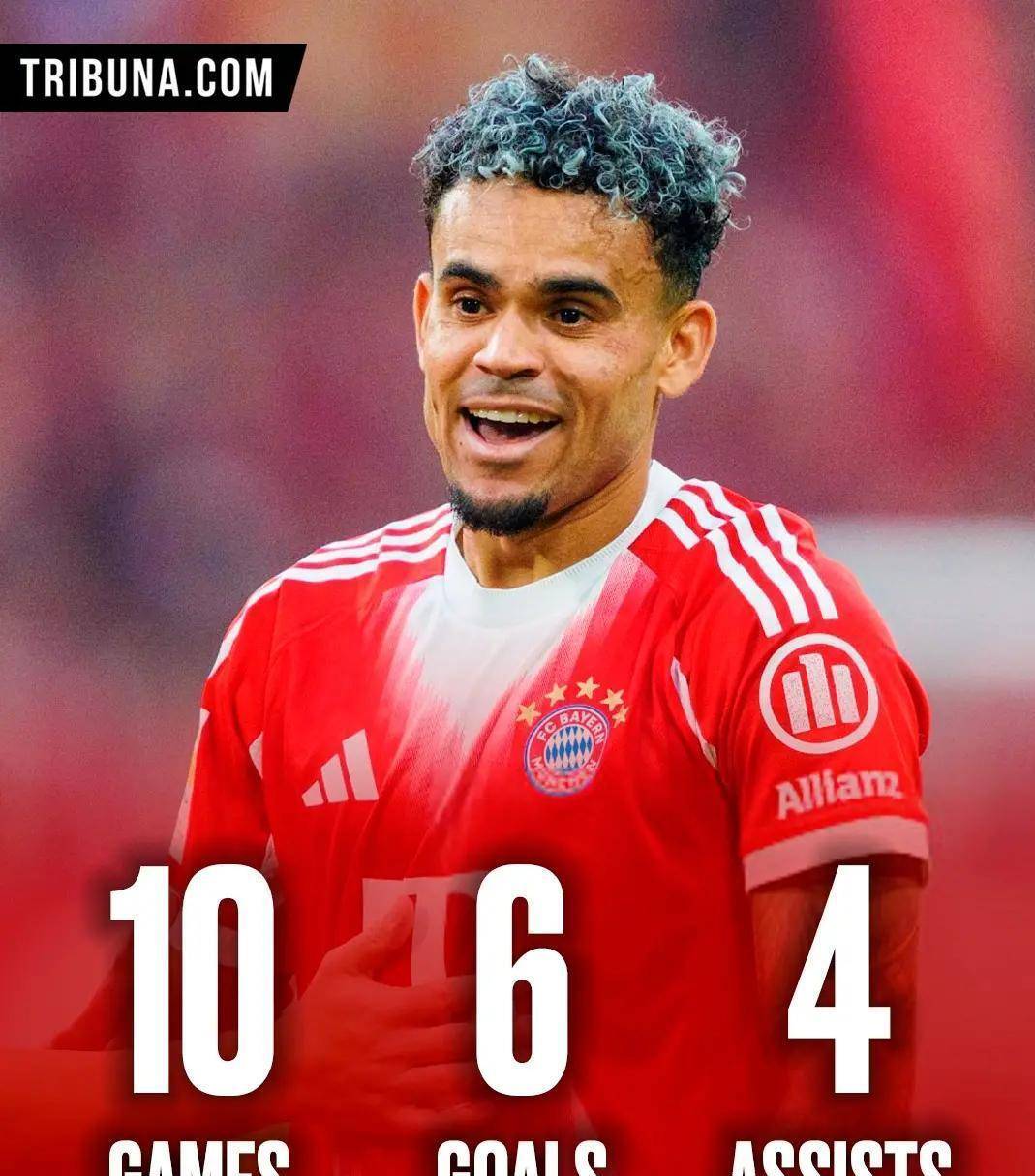 迪亚斯只用了一场比赛就让所有质疑者闭上了嘴。 德甲首秀面对RB莱比锡,他一人独造三球,贡献一射两传,直接帮助拜仁6-0血洗对手。 更惊人的是,他成为了德甲历史上第一位在首秀中就参与三粒进球的球员。 这样的开局,谁也想不到。